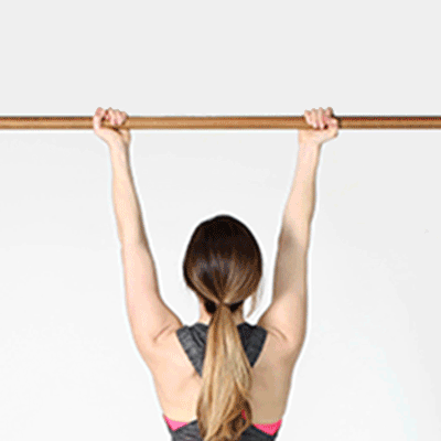 - Hang from the bar using a supinated grip.