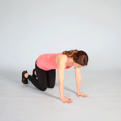 - Start on all fours, hands below your shoulders and knees below your hips.